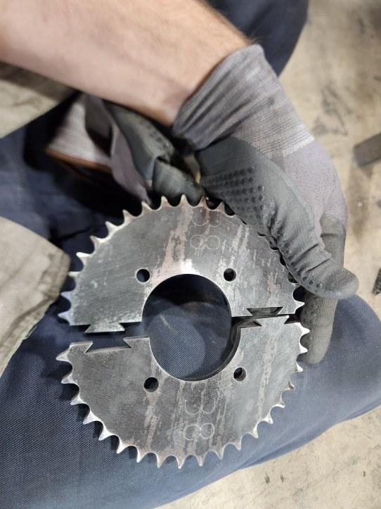 If you order the axle from us we will include a split sprocket to mount on the axle for free! Please contact us to help decide how many teeth you want on the axle sprocket. The gearbox has a 1:1.3 reduction in forward and 1:2.6 in reverse.